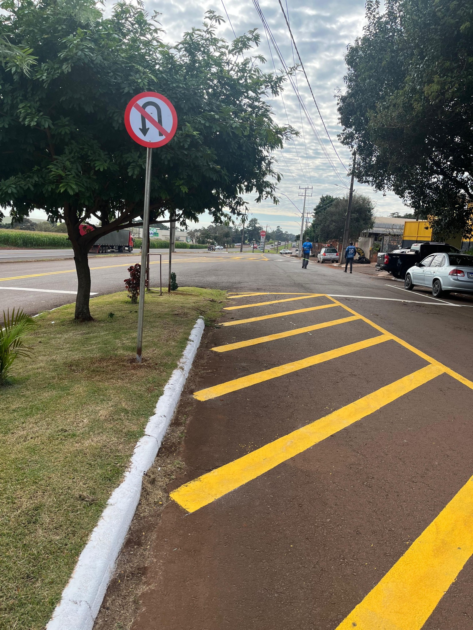 Sinalização horizontal e vertical realizada no entroncamento da Rua Internacional com Avenida Brasilia. Solicitação antiga da população tendo em vista o grande fluxo de veículos naquela região, no qual motoristas andavam pela contra mão e faziam conversões irregulares devido a falta de sinalização, melhorando assim o fluxo e dando agilidade no trânsito.