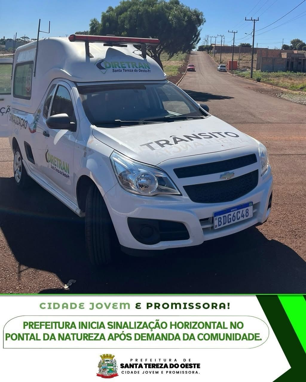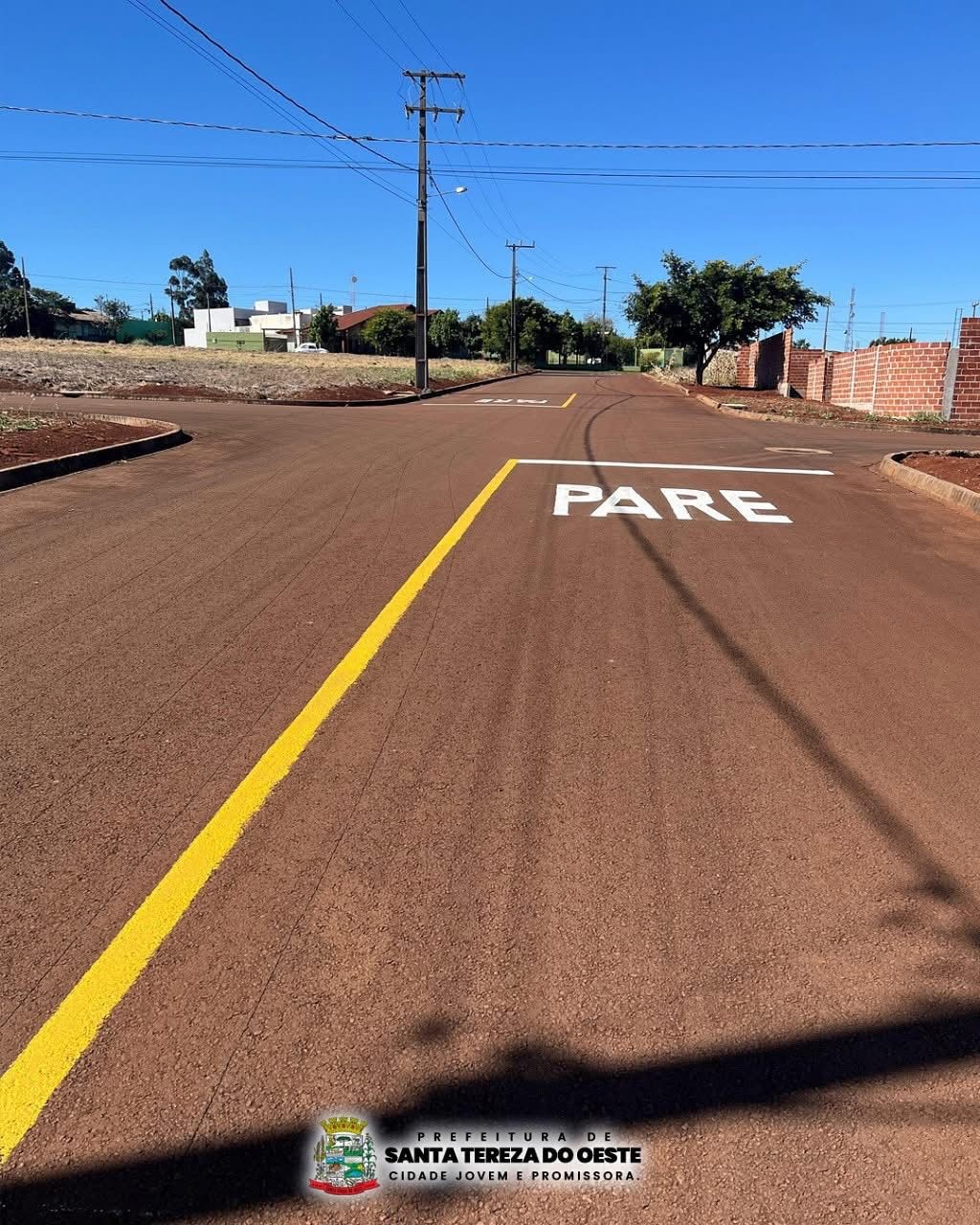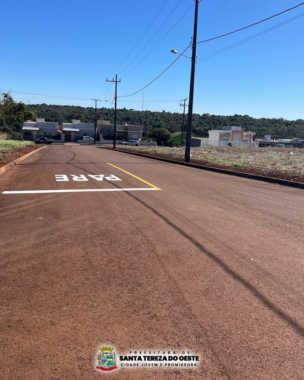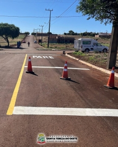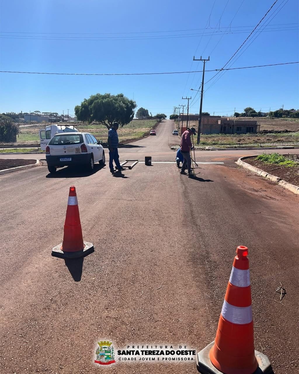 A Prefeitura de Santa Tereza do Oeste, por meio da Secretaria de Trânsito, realizou a sinalização horizontal no bairro Pontal da Natureza, uma ação nunca feita no local.