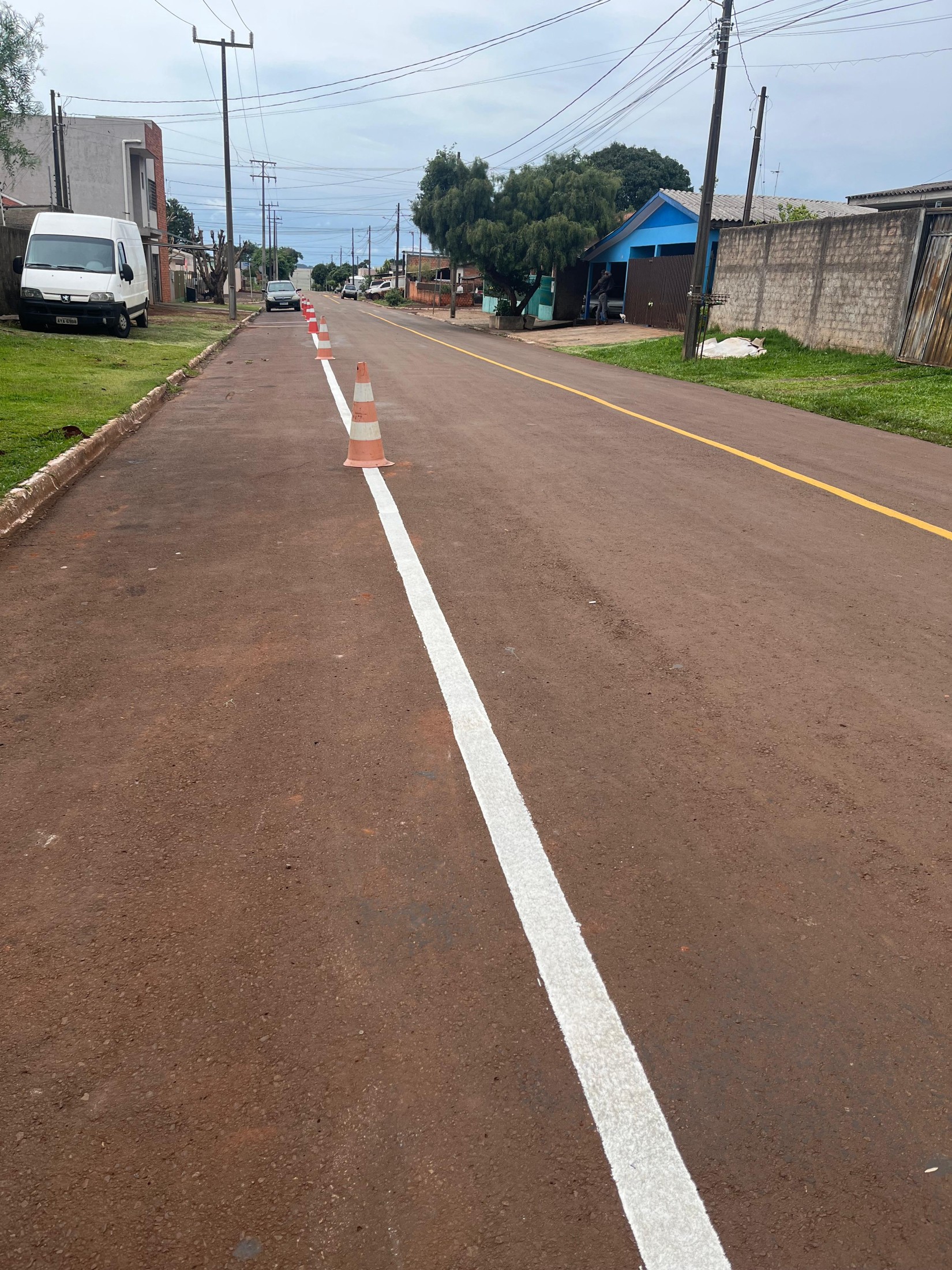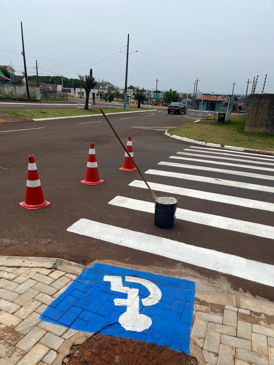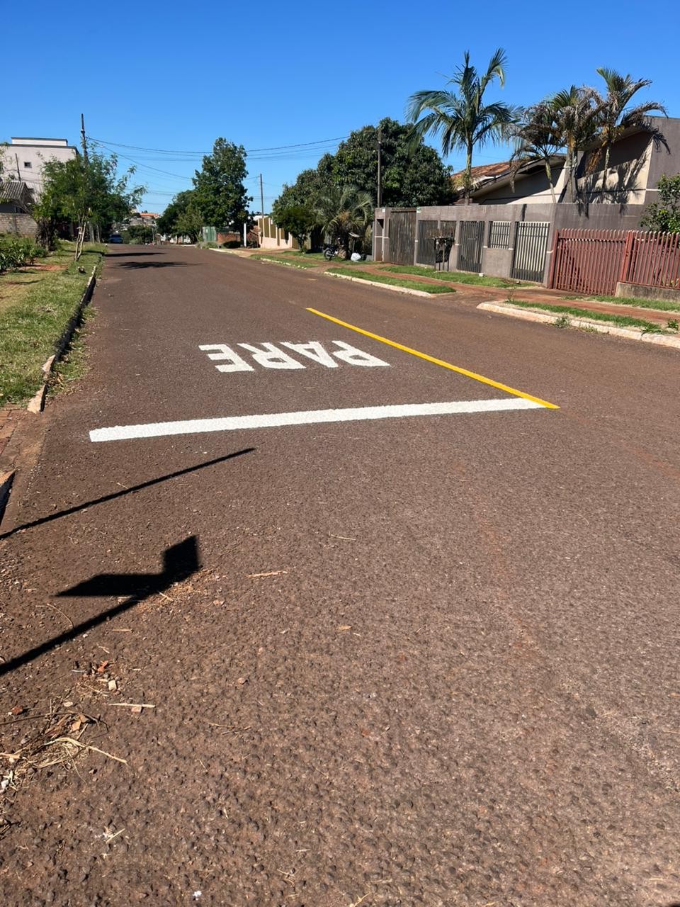 Sinalização horizontal e vertical realizada na Rua Nacional. Solicitação atendida tendo em vista o grande fluxo de veículos naquela região. Também esta sendo realizado pintura de meio fios no Bairro Vila Operaria.