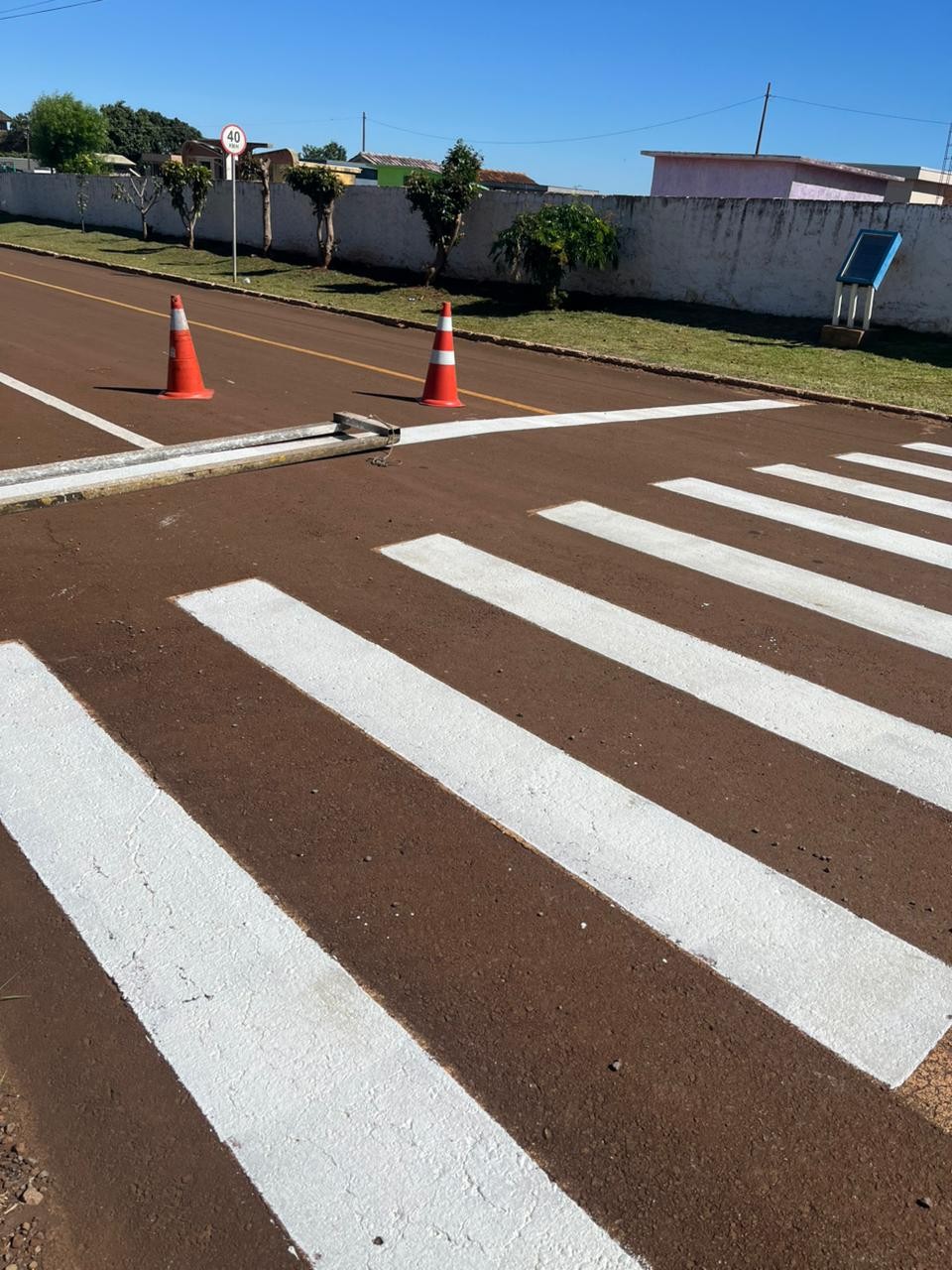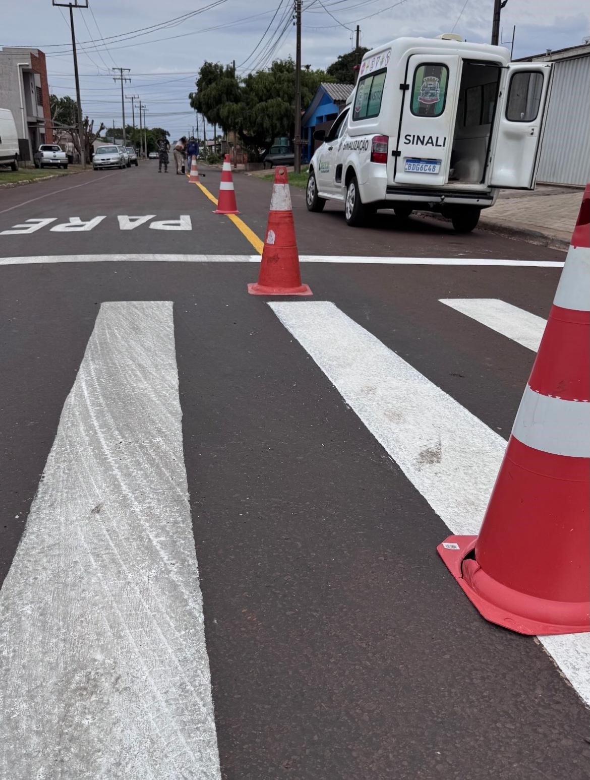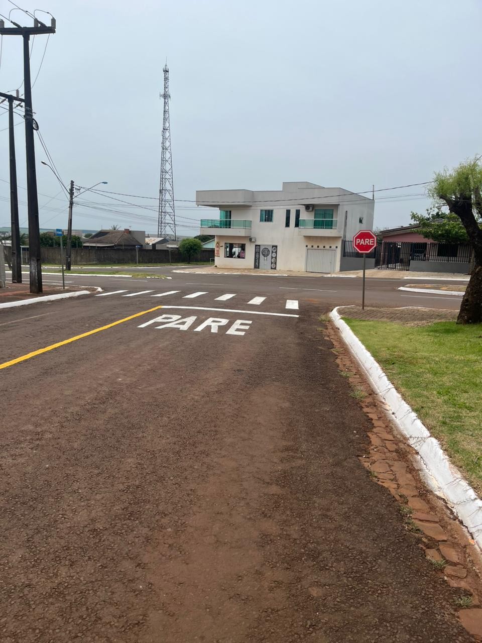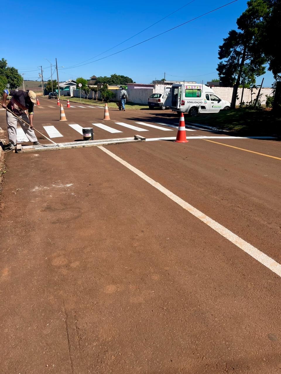Sinalização horizontal e vertical realizada na Rua Nacional. Solicitação atendida tendo em vista o grande fluxo de veículos naquela região. Também esta sendo realizado pintura de meio fios no Bairro Vila Operaria.