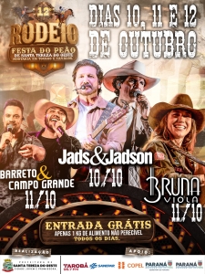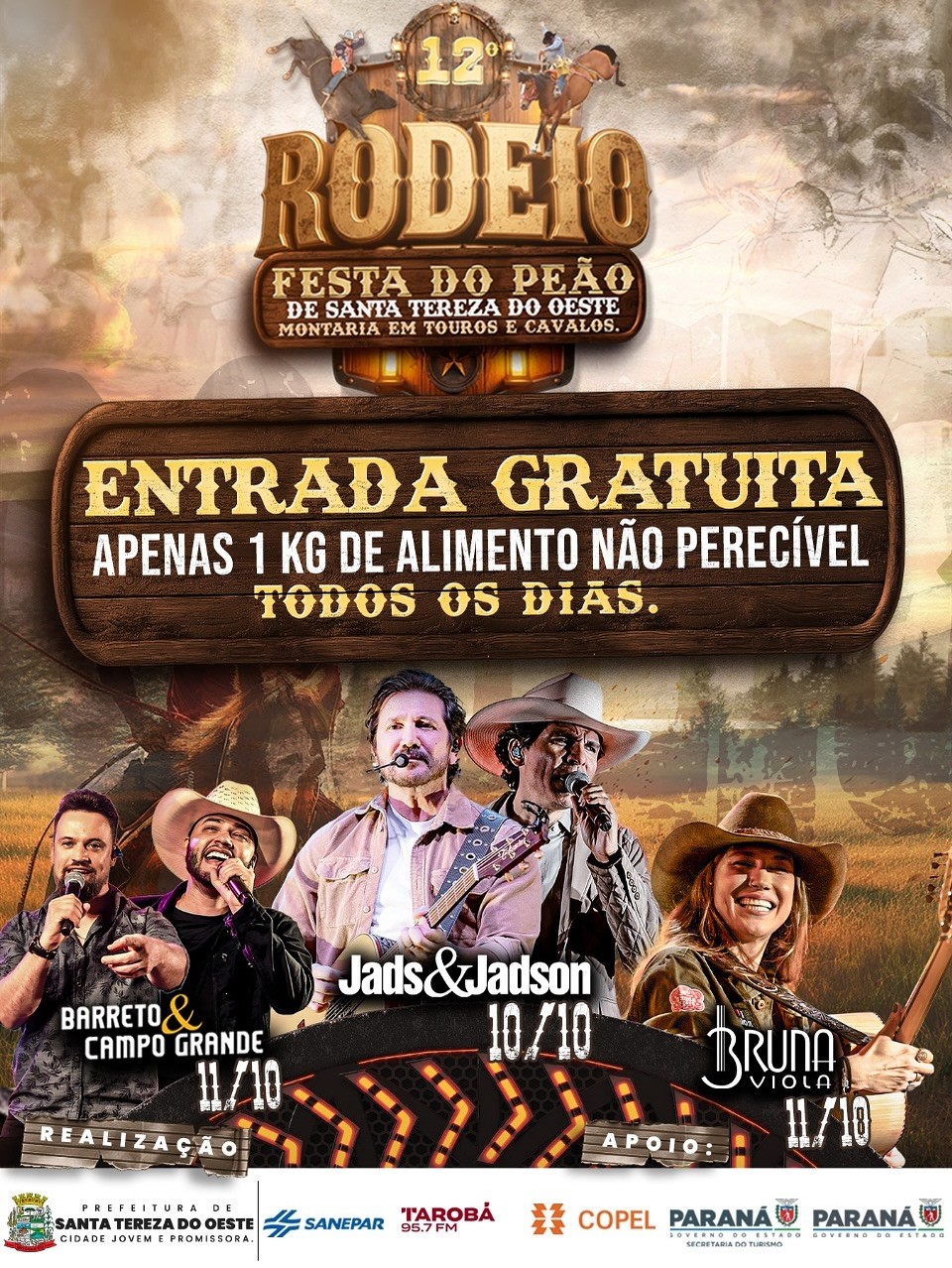 A Prefeitura Municipal agradece a todos os organizadores, competidores, patrocinadores e à comunidade que fez parte dessa grande festa. O 12º Rodeio - Festa do Peão de Santa Tereza do Oeste entrou para a história como um símbolo do retorno das nossas tradições e do fortalecimento da nossa cultura local.