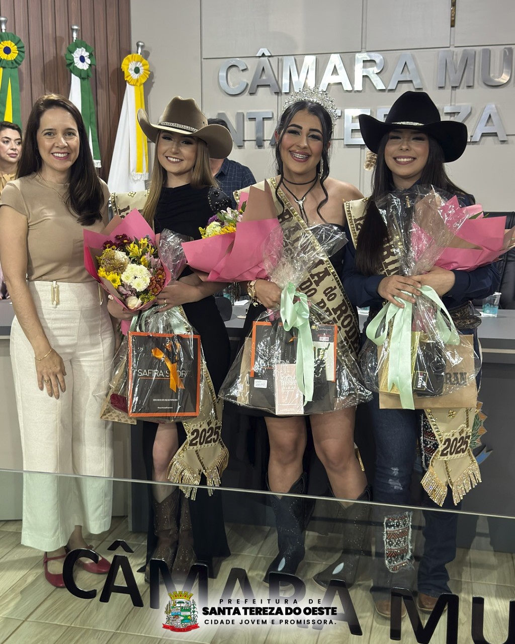 A cidade viveu uma tarde de muita emoção, beleza e alegria durante a revelação das ganhadoras da Rainha do 12º Rodeio – Festa do Peão de Santa Tereza do Oeste! O evento foi um verdadeiro sucesso e marcou o início das comemorações do nosso tradicional rodeio, reunindo a comunidade em um clima de festa e entusiasmo.