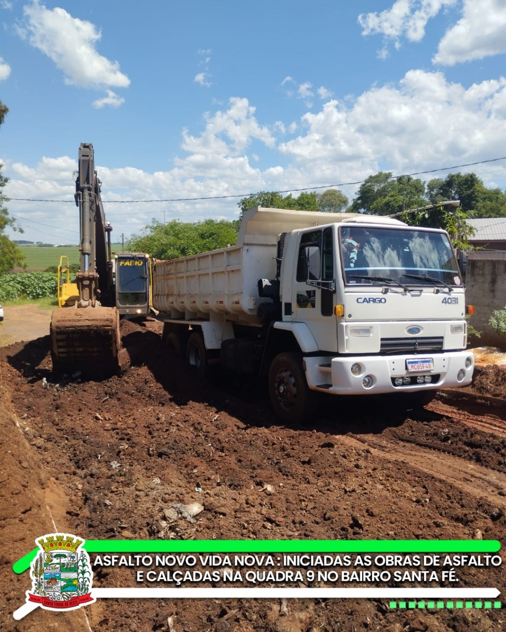 A mesma empresa também segue atuando no Loteamento José Vinícius Rubio, garantindo agilidade e continuidade nas obras que há anos eram aguardadas.