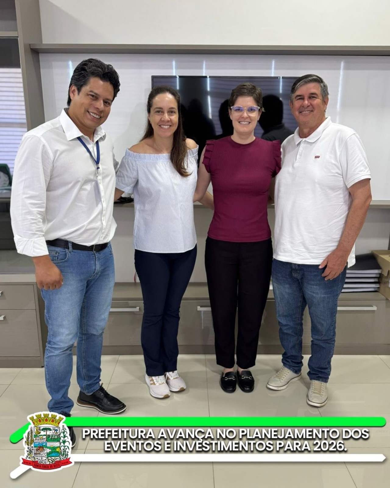 Participaram também da reunião a secretária de Cultura e Turismo, Adriana Redivo Lazzarotto, e a secretária de Administração, Taynara Rigolin, alinhando as ações e prioridades do município.