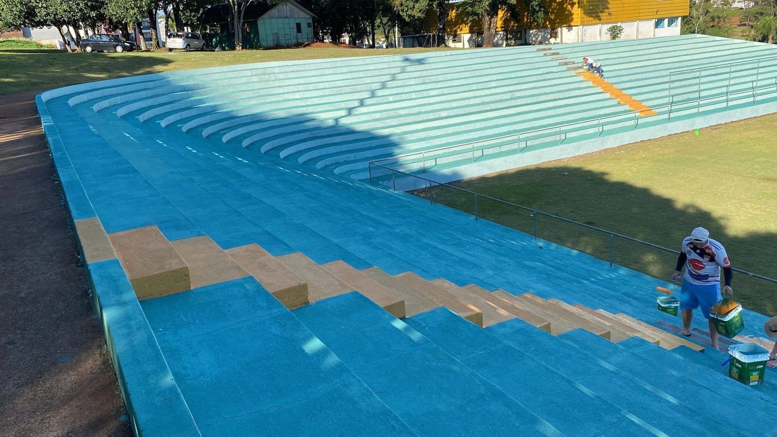 A obra de recuperação da pintura do estádio municipal foi concluída no dia 12 de abril pela Secretaria de Esportes e funcionários do pátio de obras, incluindo a renovação das arquibancadas.